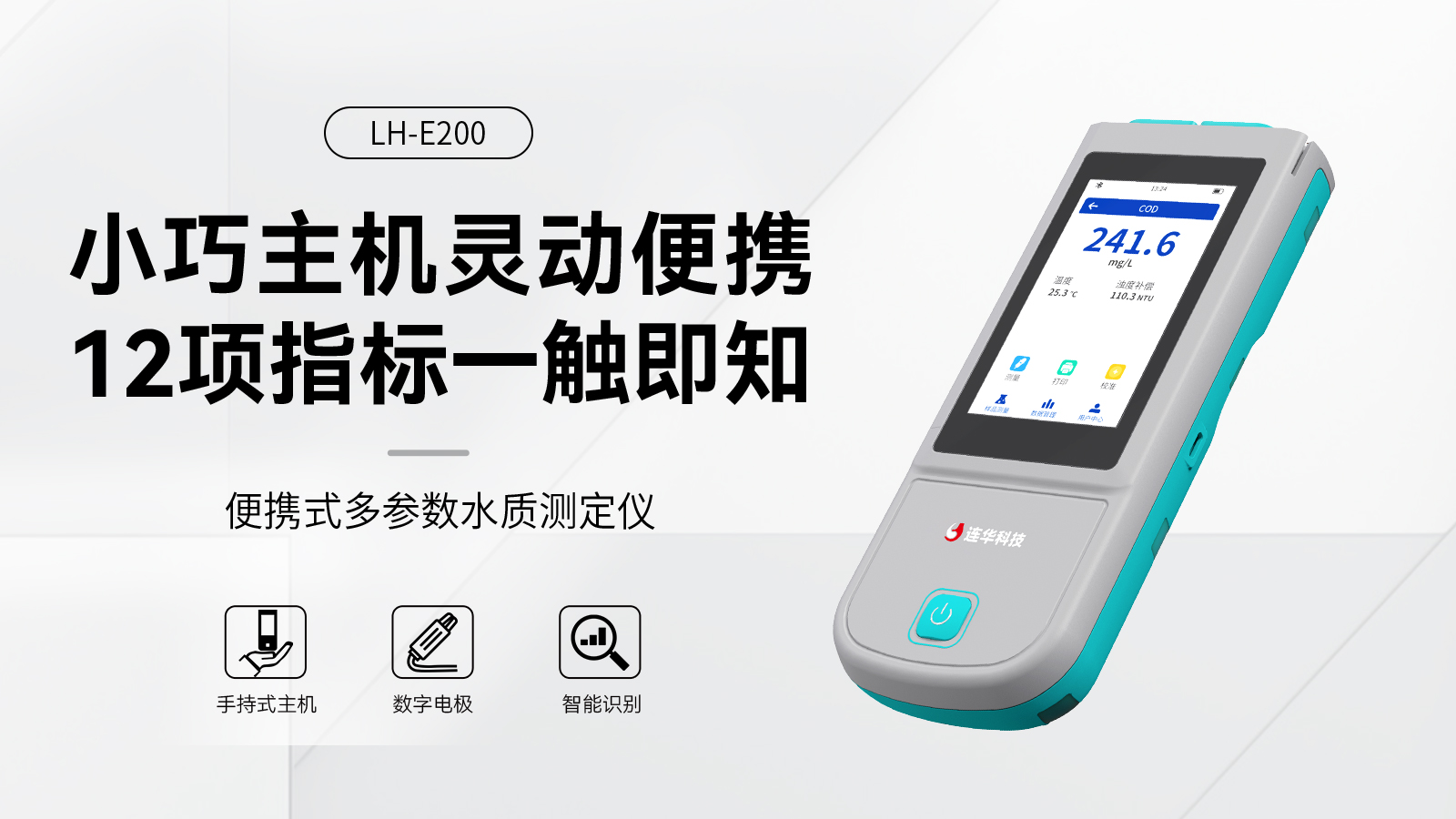 ●手持式迷你主機(jī),支持12項(xiàng)水質(zhì)指標(biāo)電極法檢測(cè),無(wú)需耗材快速出值;