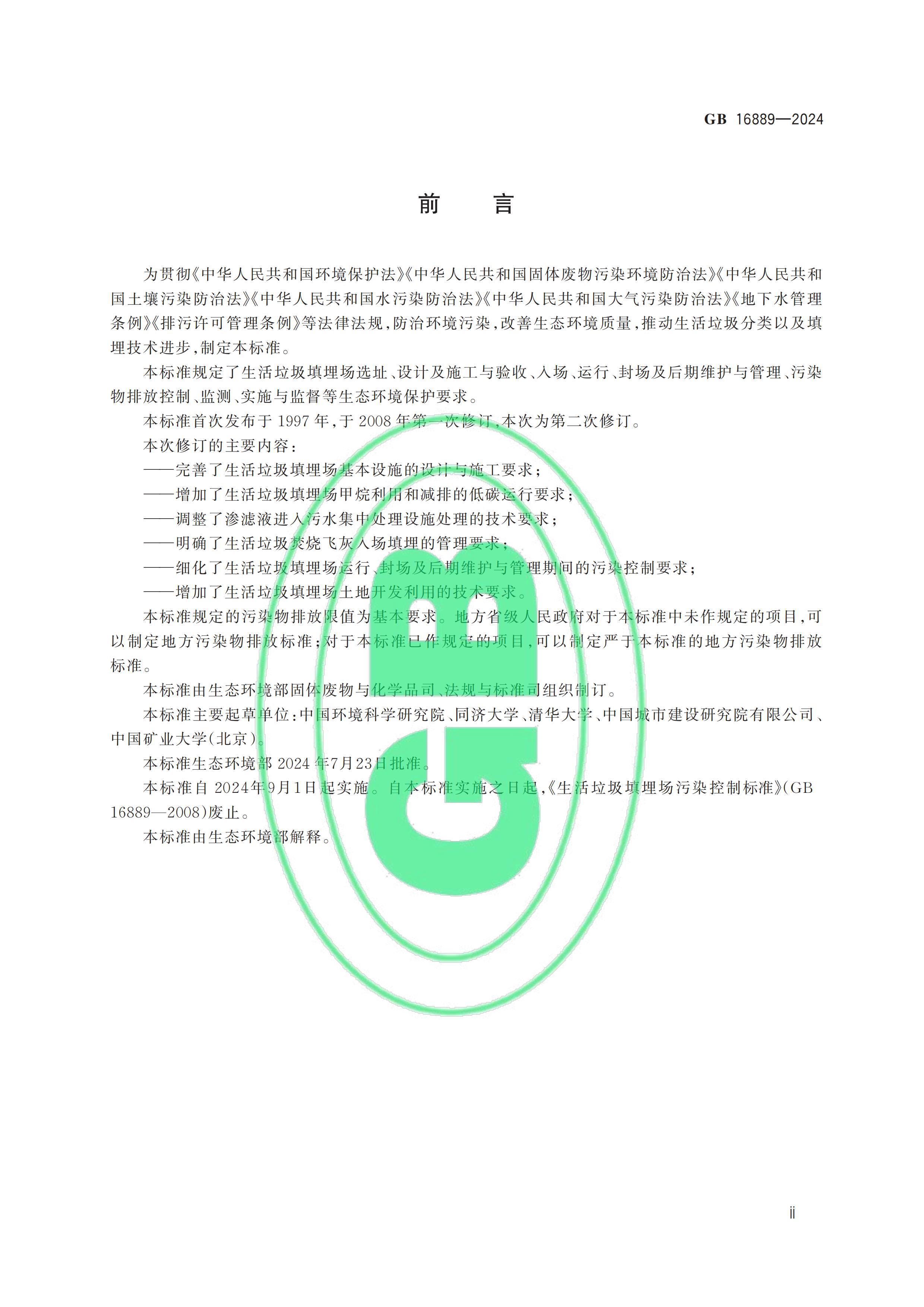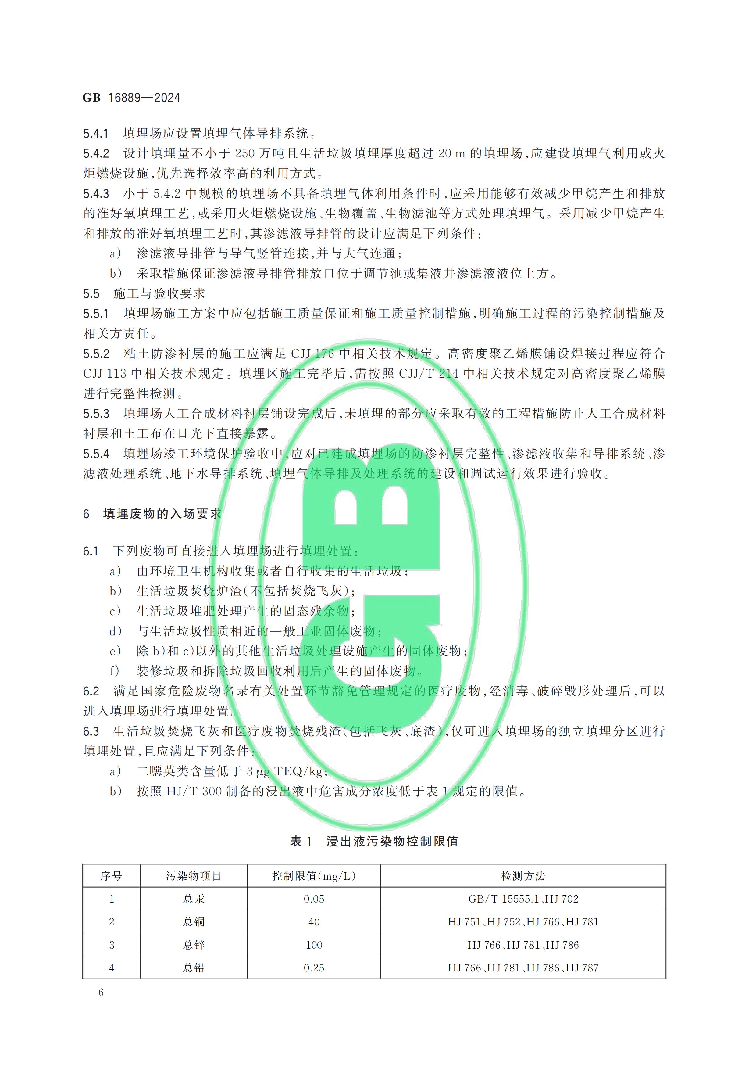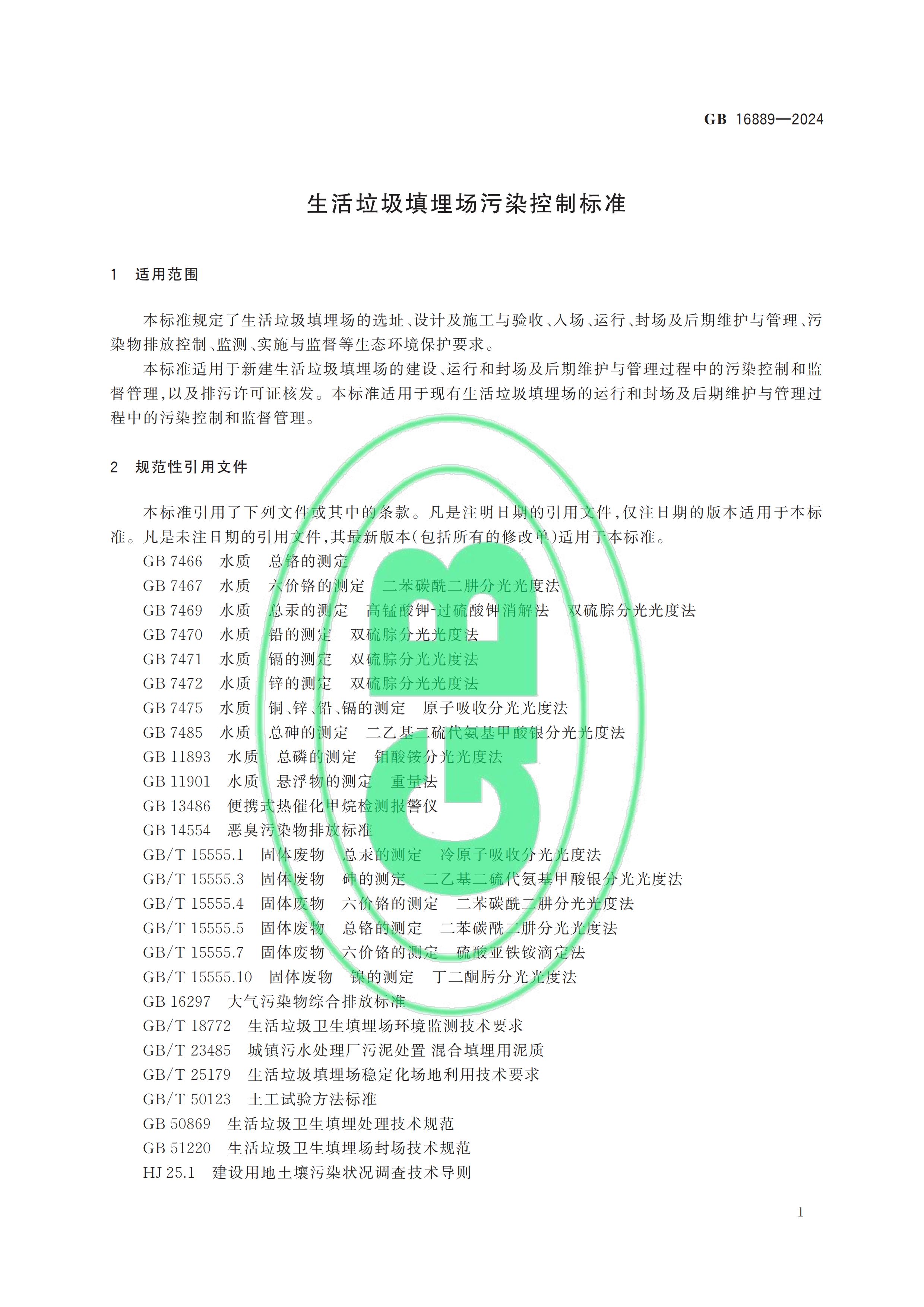 從“全國(guó)標(biāo)準(zhǔn)信息公共服務(wù)平臺(tái)”獲悉,國(guó)家標(biāo)準(zhǔn)《生活垃圾填埋場(chǎng)污染控制標(biāo)準(zhǔn)》(GB 16889-2024)已于2024年7月24日正式發(fā)布,新標(biāo)準(zhǔn)將替代原先的GB 16889-2008,于2024年9月1日起正式實(shí)施。以下是GB 16889-2024標(biāo)準(zhǔn)全文: