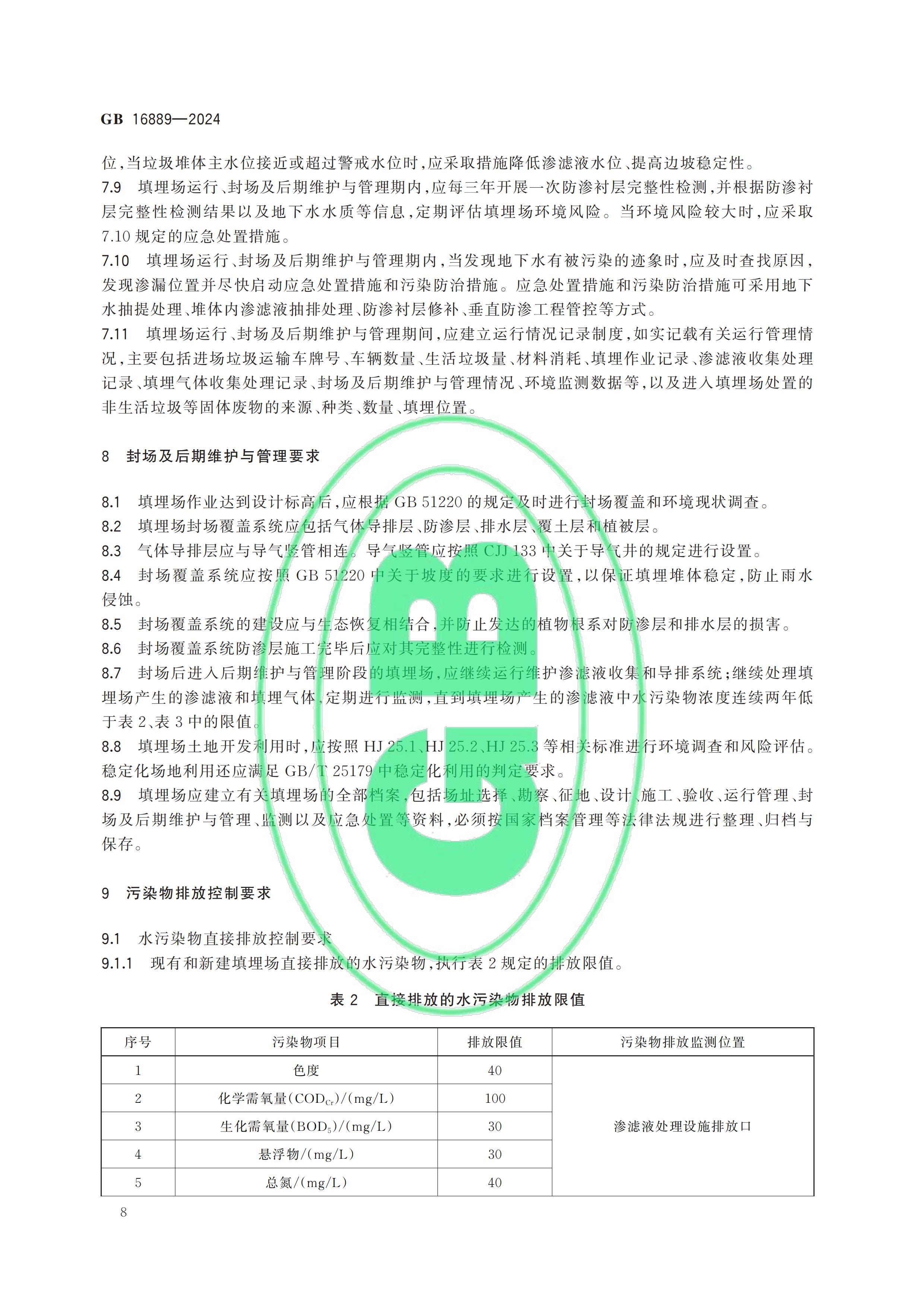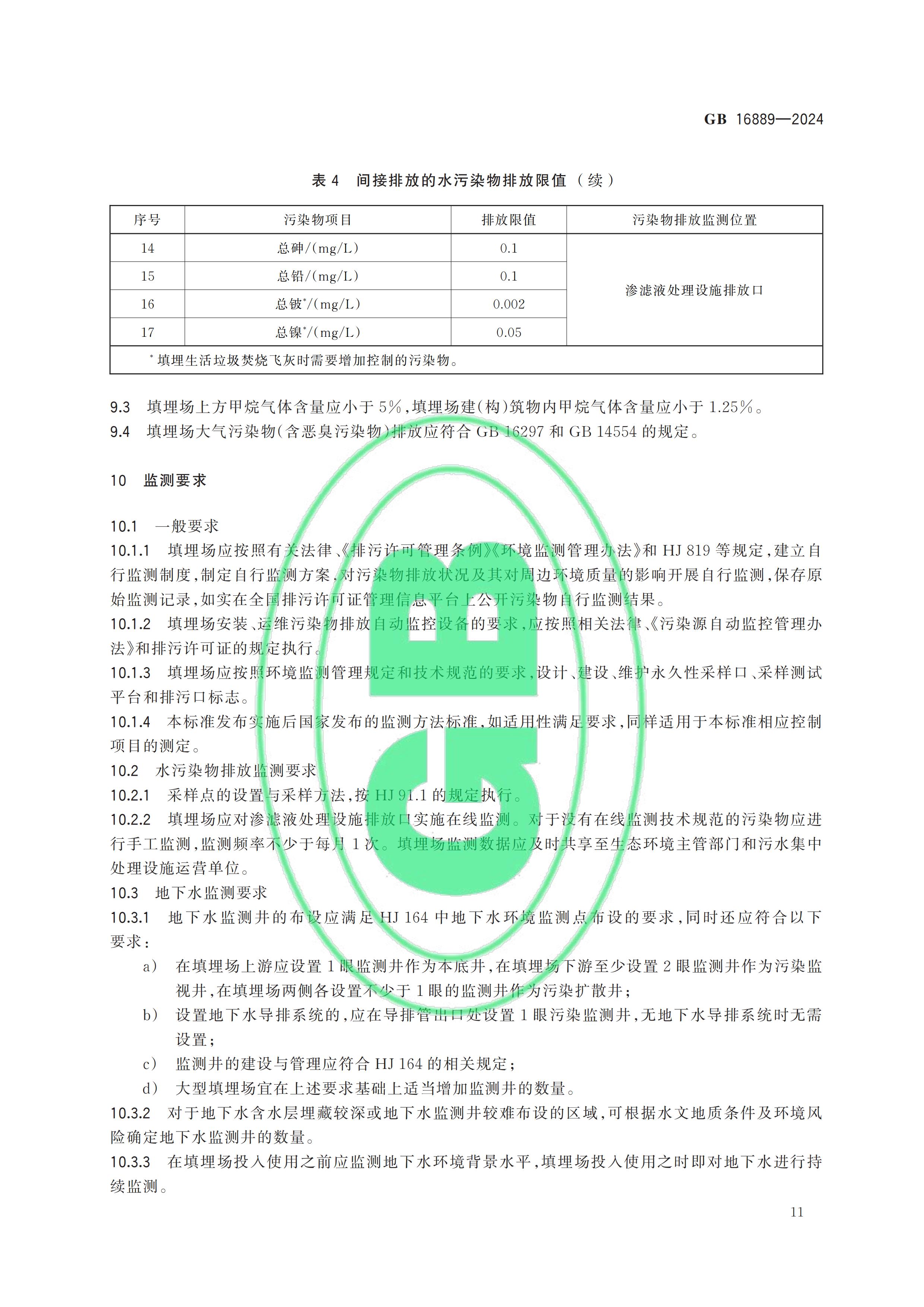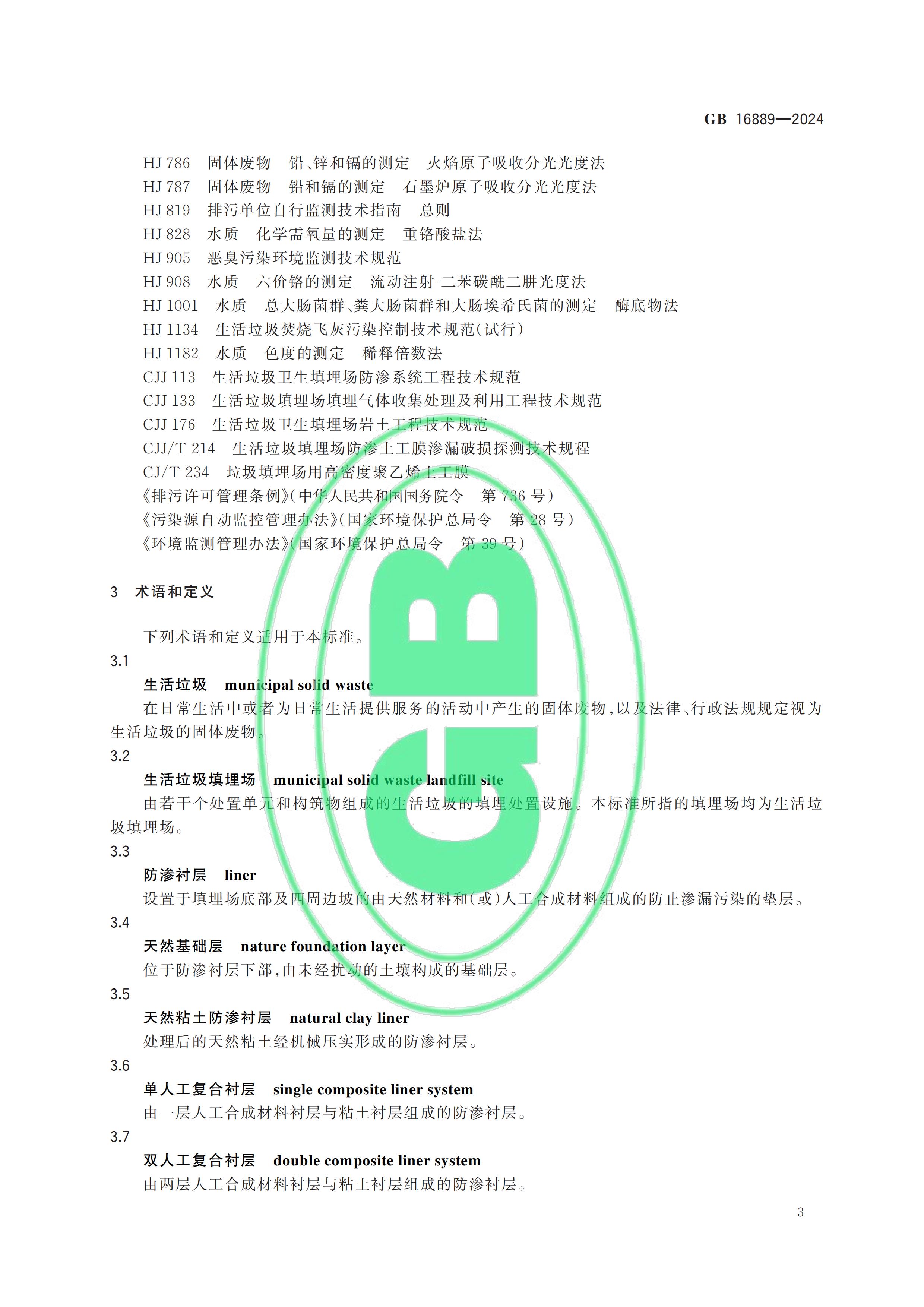 從“全國(guó)標(biāo)準(zhǔn)信息公共服務(wù)平臺(tái)”獲悉,國(guó)家標(biāo)準(zhǔn)《生活垃圾填埋場(chǎng)污染控制標(biāo)準(zhǔn)》(GB 16889-2024)已于2024年7月24日正式發(fā)布,新標(biāo)準(zhǔn)將替代原先的GB 16889-2008,于2024年9月1日起正式實(shí)施。以下是GB 16889-2024標(biāo)準(zhǔn)全文: