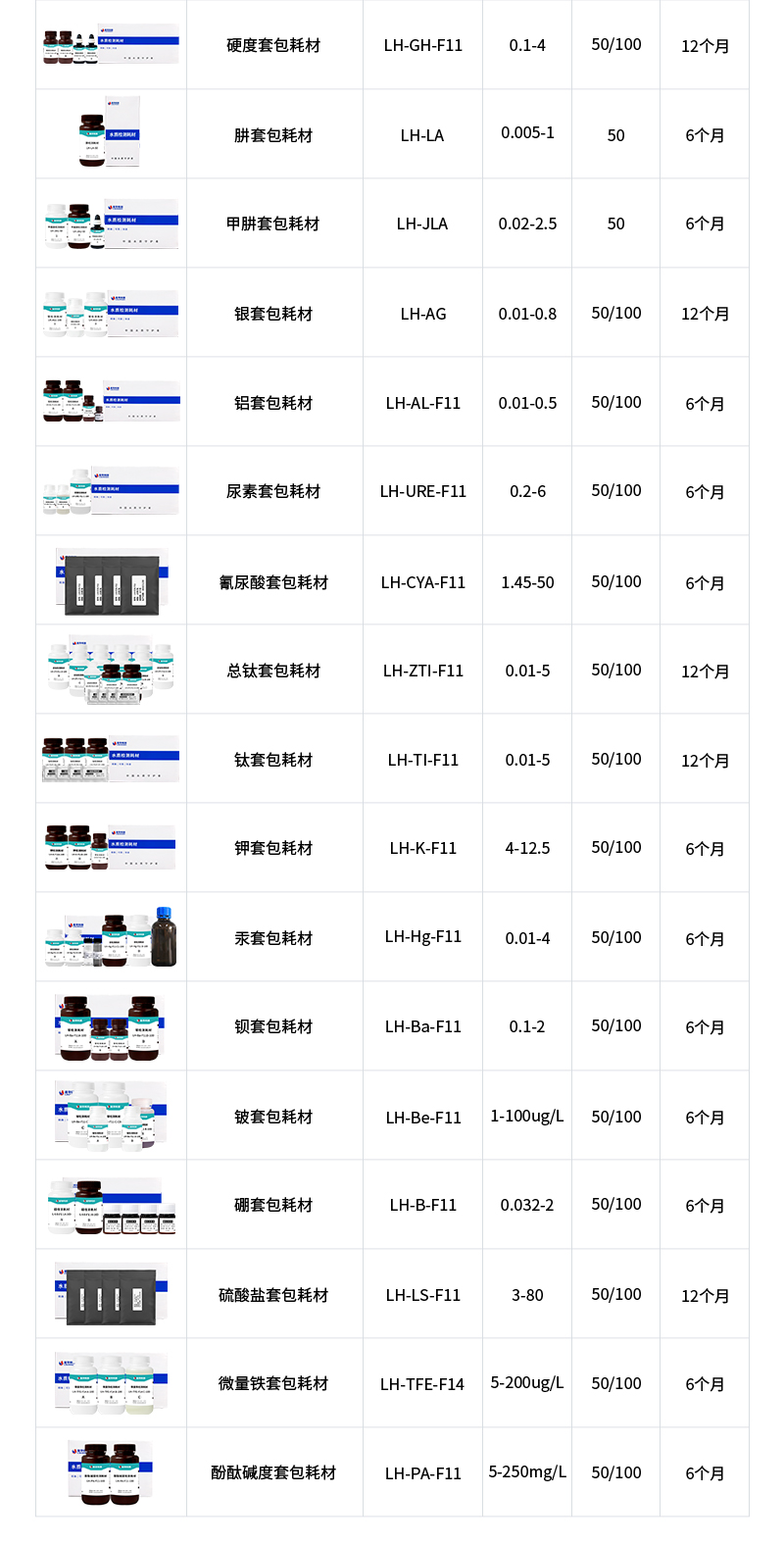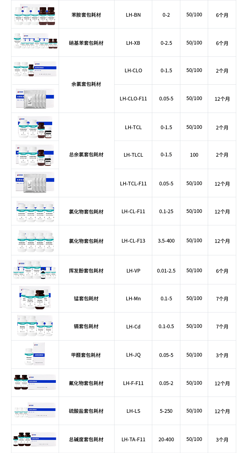 水質(zhì)污染物液體耗材技術(shù)參數(shù):