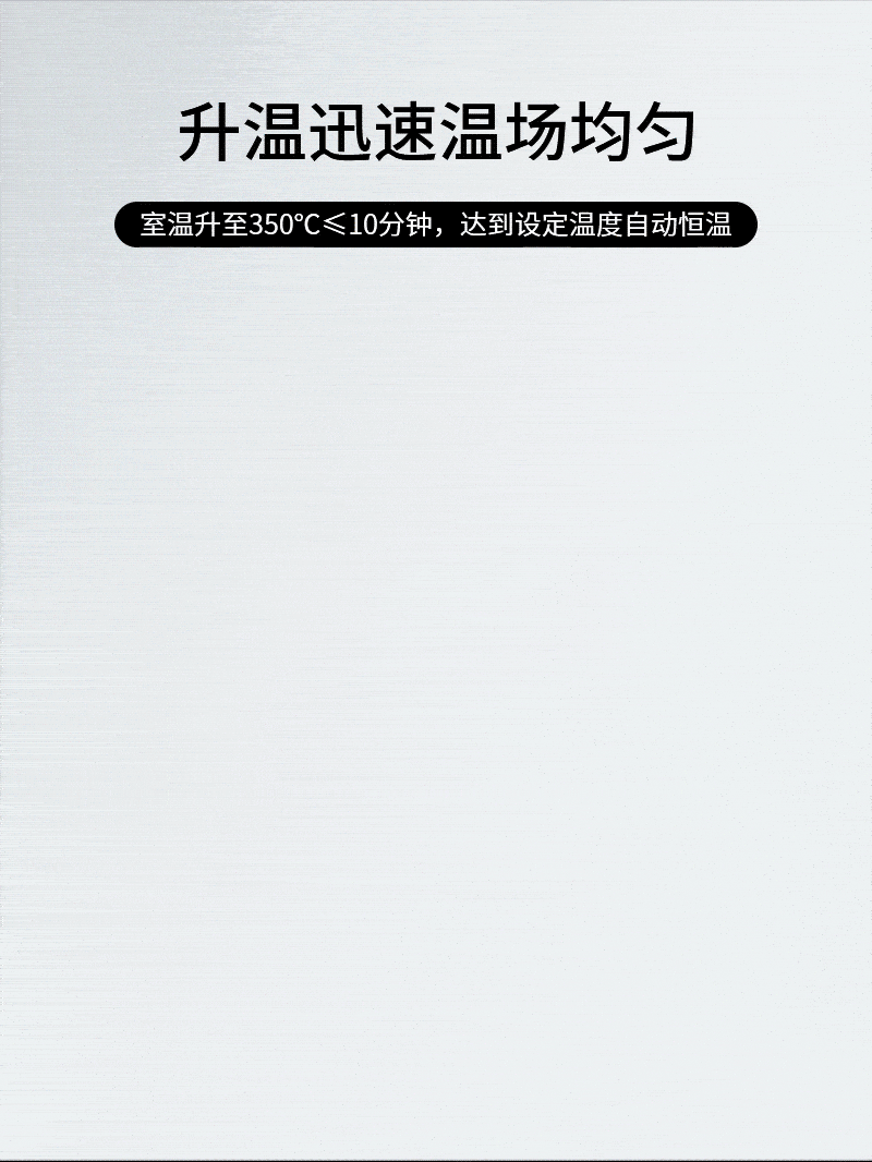 2.升溫迅速溫場(chǎng)均勻,室溫升至350℃≤10分鐘,達(dá)到設(shè)定溫度自動(dòng)恒溫;