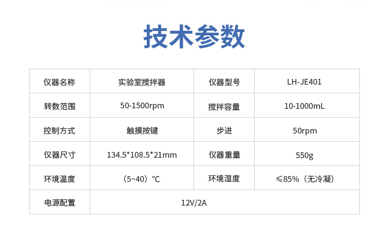 實(shí)驗(yàn)室攪拌器LH-JE401技術(shù)參數(shù):