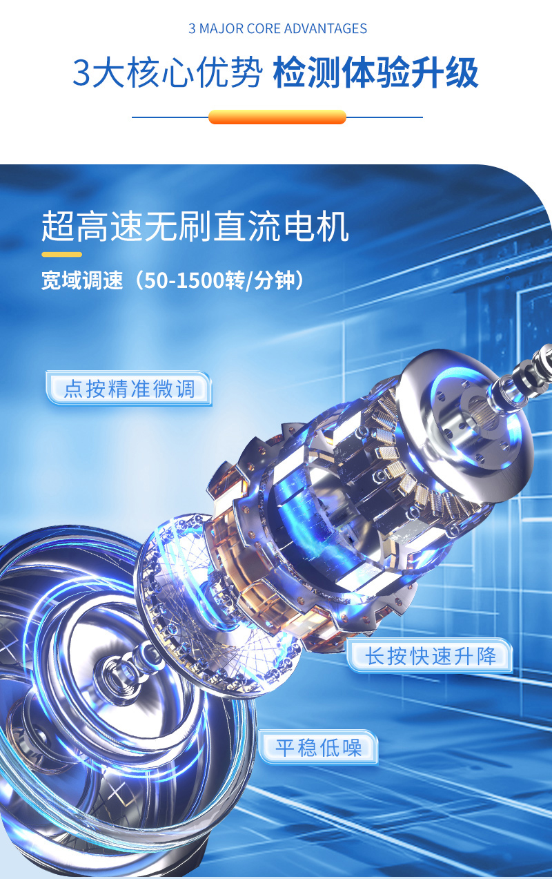1、強(qiáng)勁動(dòng)力,無(wú)極調(diào)速:50-1500轉(zhuǎn)/分鐘寬幅調(diào)速,點(diǎn)按精準(zhǔn)調(diào)節(jié),長(zhǎng)按快速增減,操作更高效;